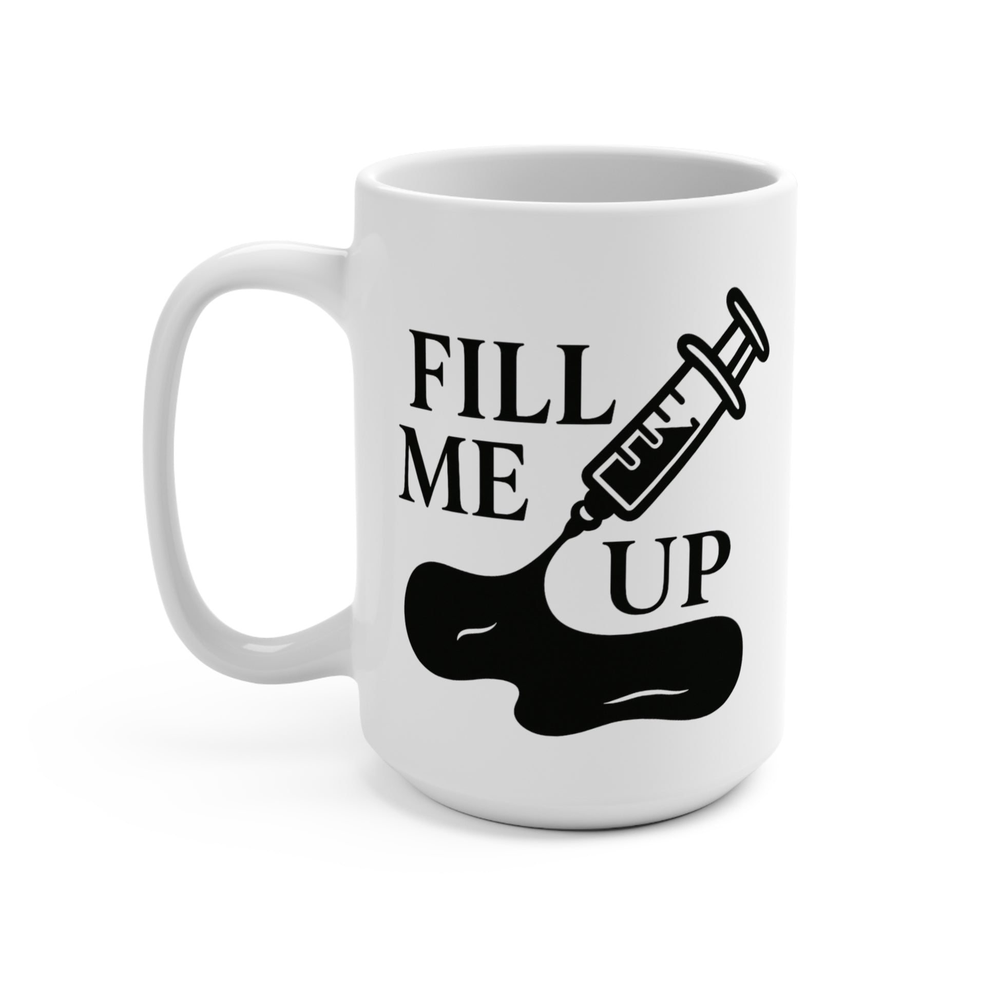 Funny 15oz Mug - 'Fill Me Up' Design for Coffee Lovers & Medical Aesthetic Professionals